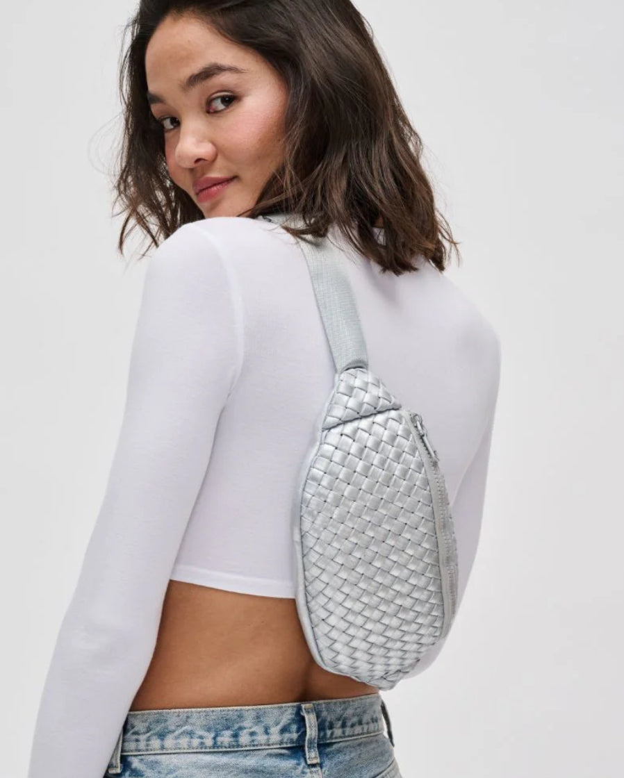 - Exterior Details: Woven, Front zipper pocket, Hidden back zipper pocket