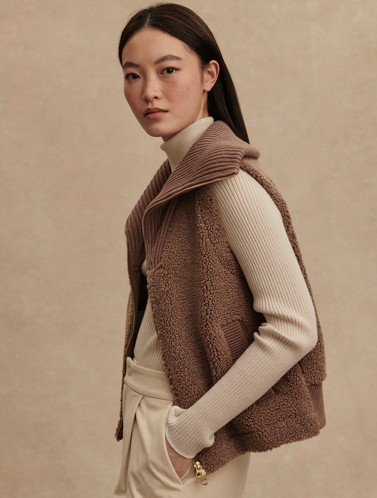Minimal effort, maximum impact. The Aspen Gilet is designed to elevate your layering essentials. Produced in a soft boucle sherpa, the Aspen is a flattering loose-fit gilet that's perfect for layering over your favourite knits, sweats and long-sleeve tees. Featuring our Varley signature insert neck, alongside a cotton rib back hem and trimmed welt pockets - practical style details with maximum impact.