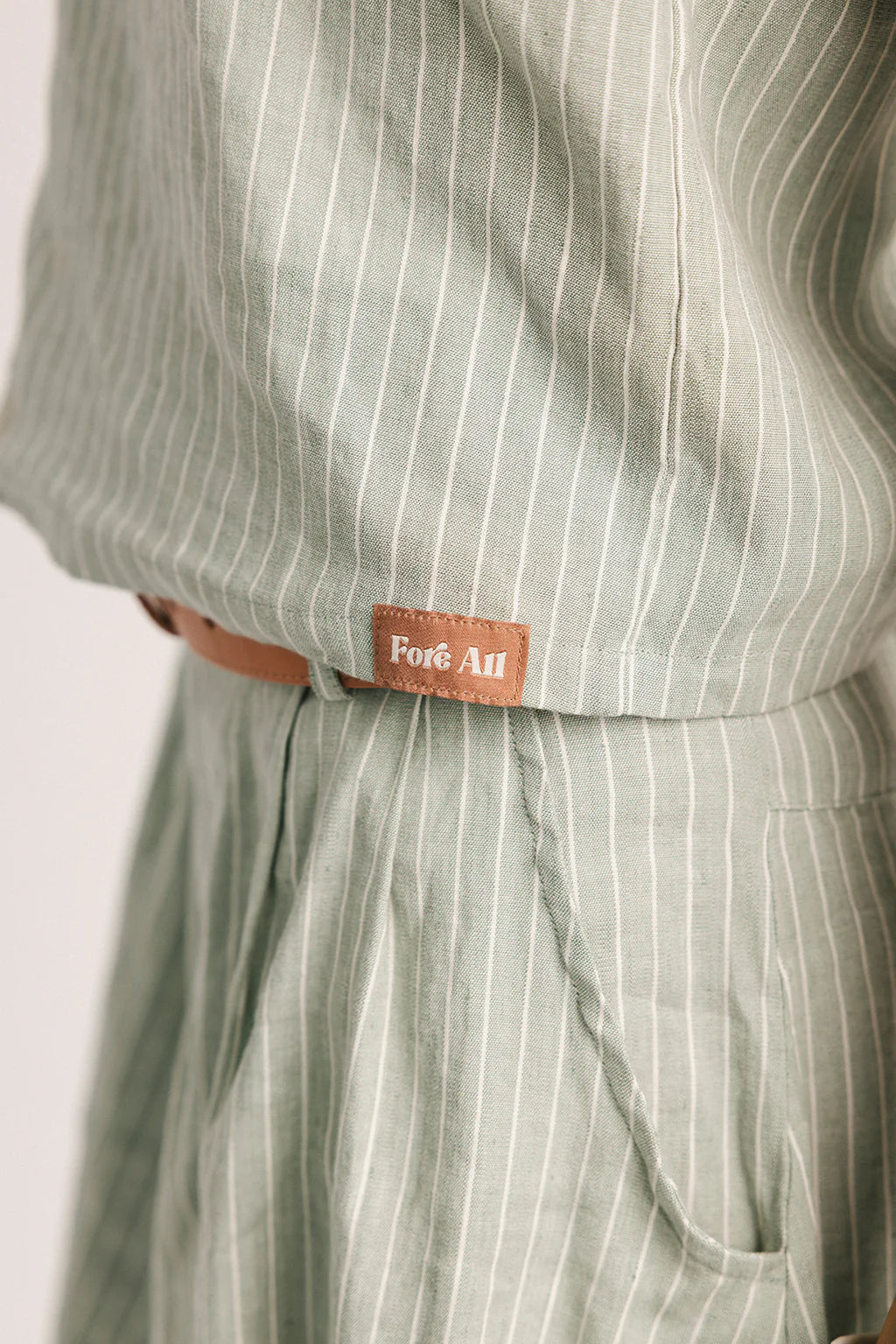 The Breeze Short for a complete linen set, paired with the Bay Bucket Hat and Country Club Bag in Floral.
