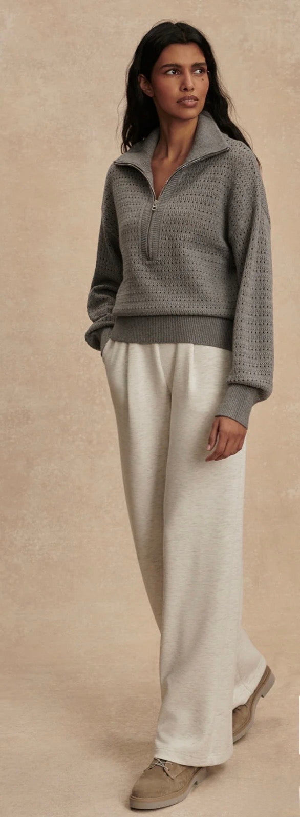 Textured for an elevated look and feel, the Darla knit is made from super soft fabric and detailed with a half-zip closure. Featuring our signature exaggerated neckline, it's finished with ribbed trims for an added touch of structure and style.
