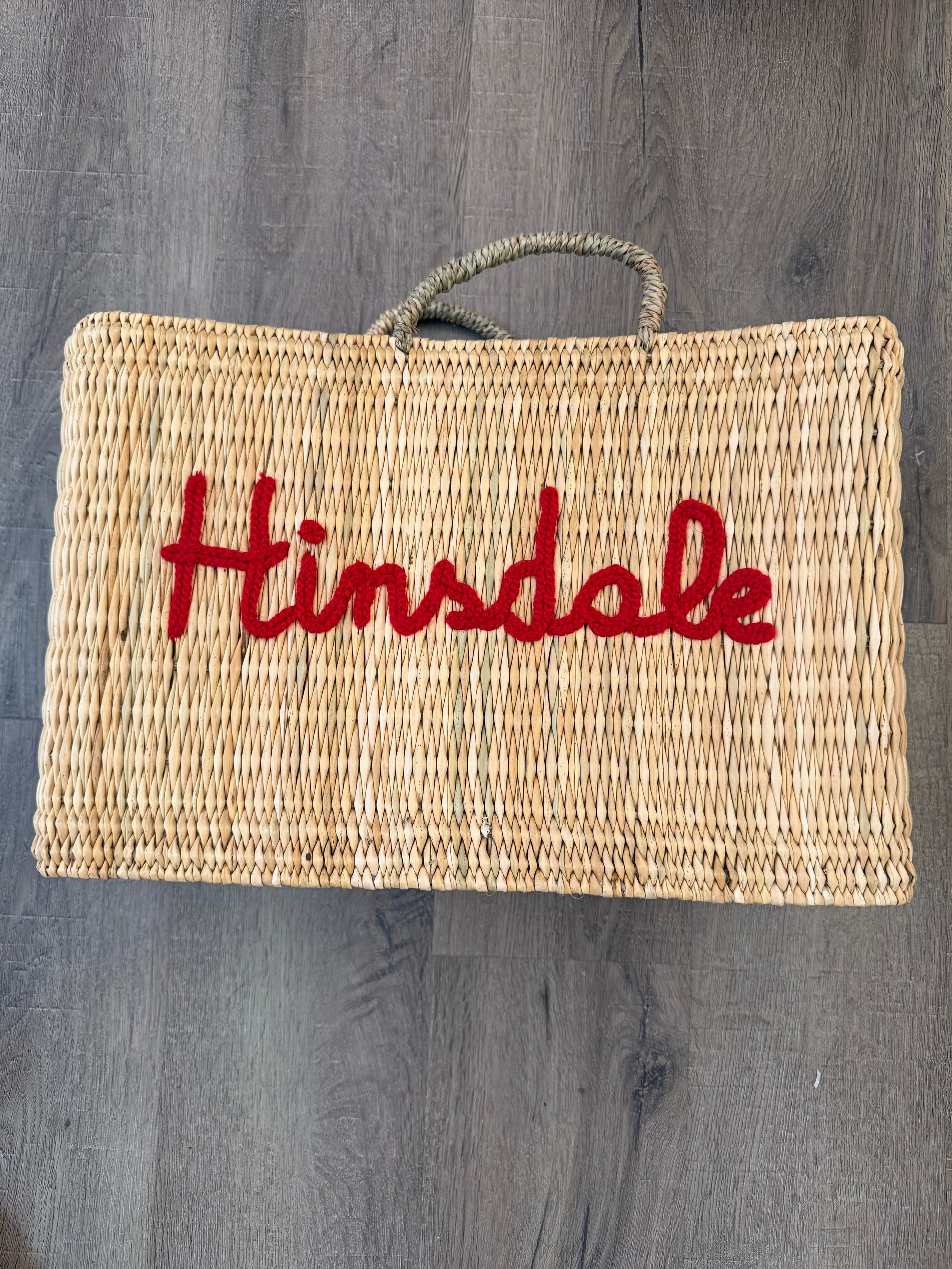 Introducing our Embroidered "Hinsdale" Rattan Bag, a beautifully handcrafted accessory that combines timeless craftsmanship with modern personalization. Made from high-quality rattan fibers, this lightweight and durable bag features custom embroidery of "Hinsdale" in either red or white, making it a unique statement piece. Perfect for any occasion, its neutral tones and natural texture effortlessly complement both casual and semi-formal outfits.