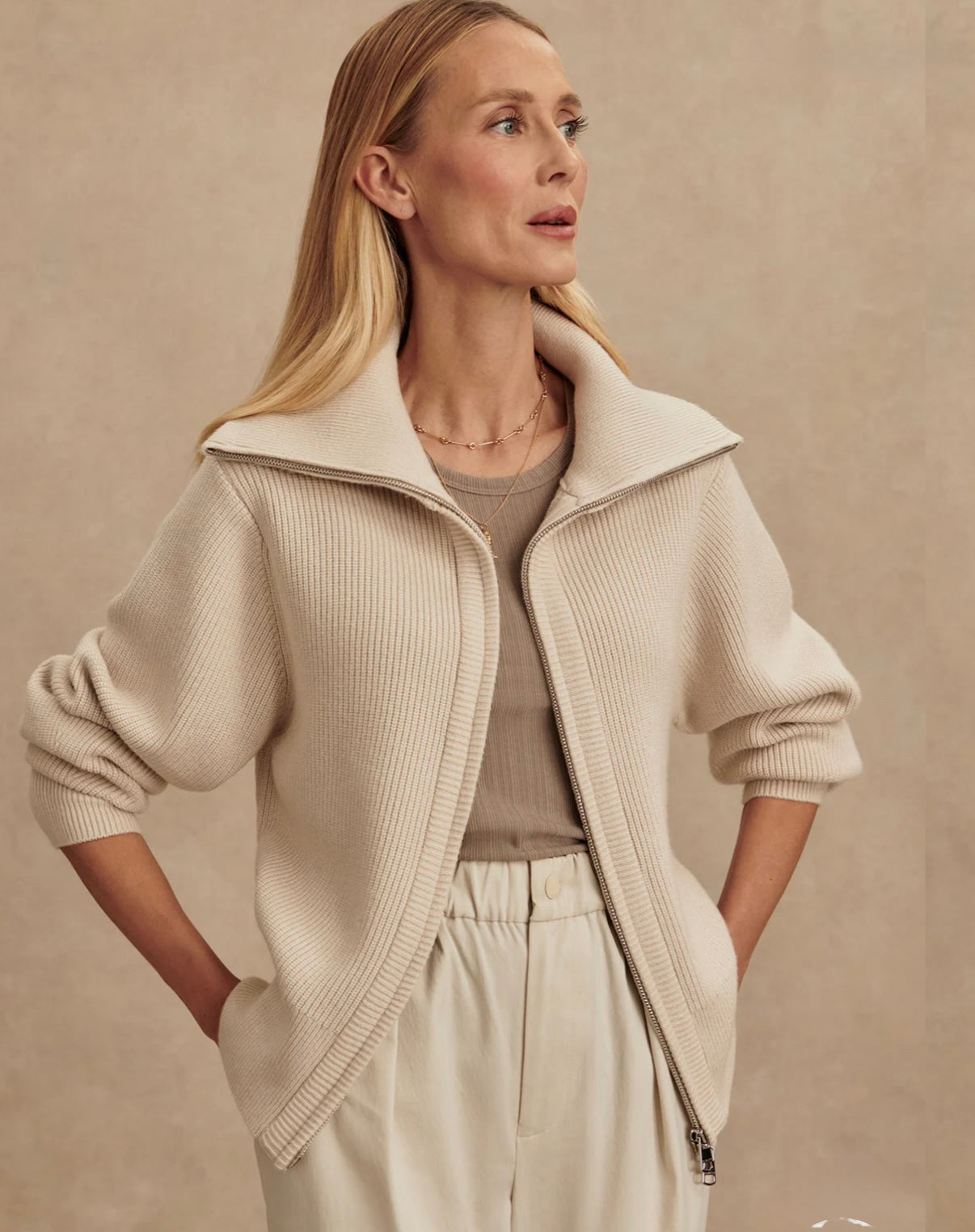 Layer up in the Enrico, a soft knit jacket that blends versatility with comfort. Crafted from our Soft Viscose yarn in a mid-gauge, all-over rib stitch, it has a more substantial feel, perfect for cool weather layering. Complete with a double-ended zip, a fold-back collar, and fashioned armhole trims.