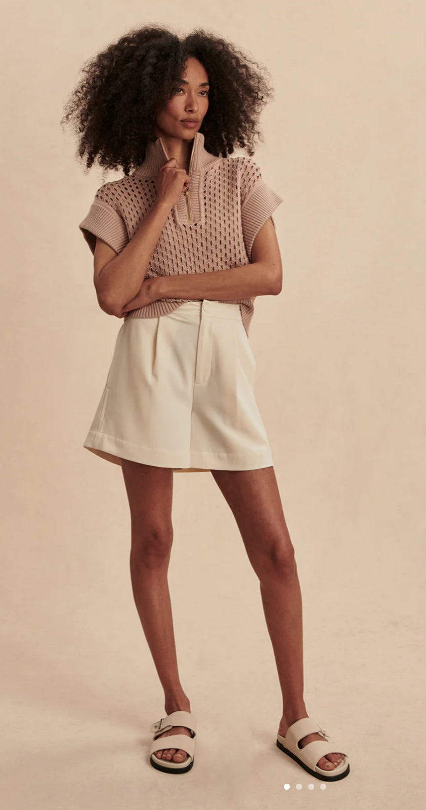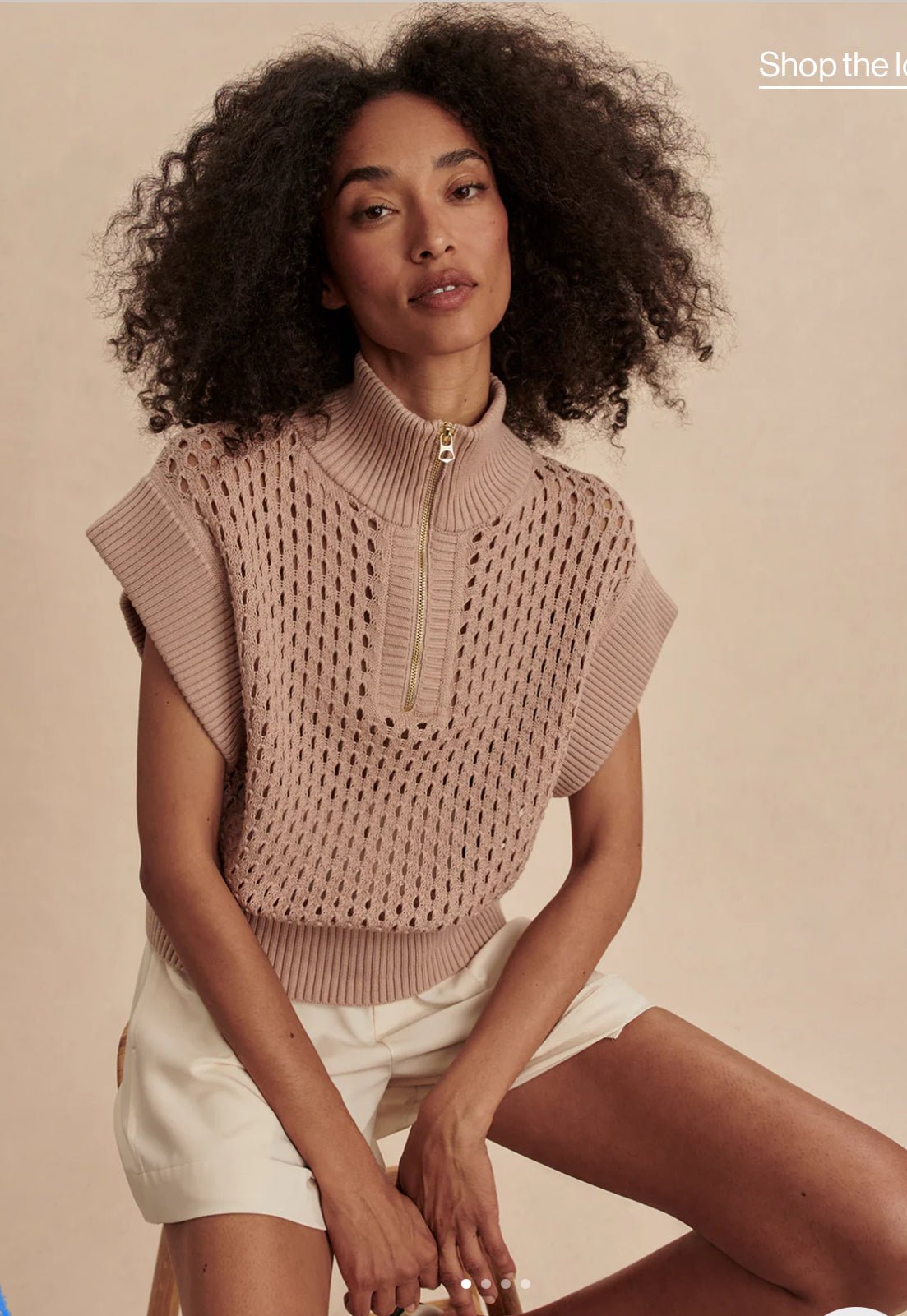 The Gaines boasts an oversized half-zip design with chic cap sleeves. Made in our textured Pineapple Knit, wear it with a bralette on warmer days and easily tuck it into shorts or pants thanks to the ribbed hem.