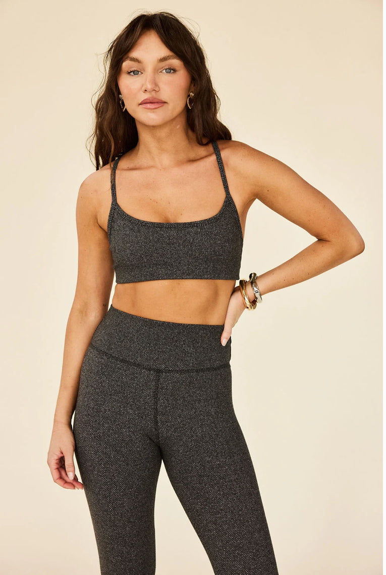 The Java Bra is a dainty, scoop-neck bra with a razor back detail and made in our heavyweight, novelty Herringbone fabric.