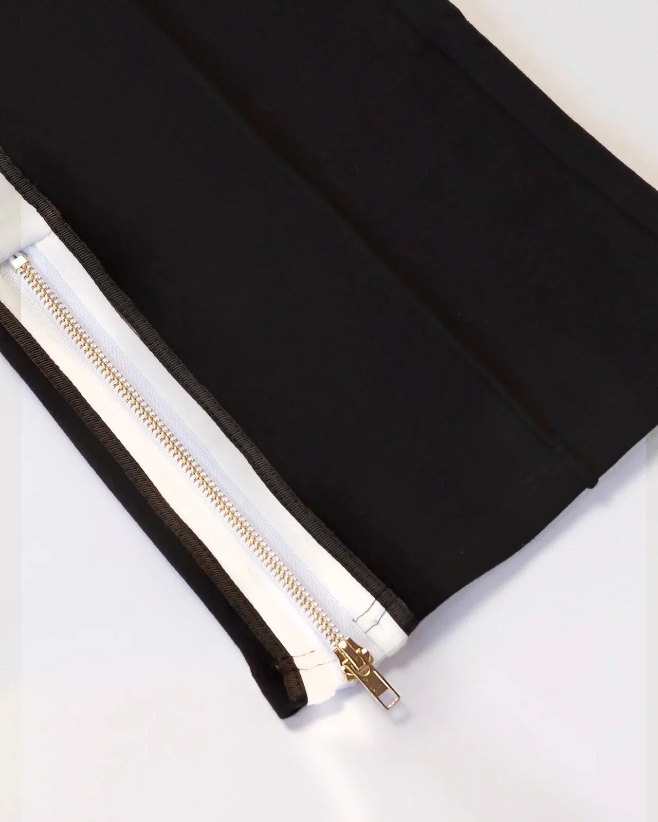 The Jordan interlock track pant is our homage to the 90’s Jordan track pant. We elevated it with a Luxé interlock fabric that is a refined process of cotton and spandex that creates a smooth finish with an extremely soft touch. This pant can be worn casually with a pair of sneakers or dresses up with heals. Paired with a tee or with the Morrison blazer she can do it all!